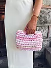 Veskene i kolleksjonen varierer fra den litt større Jomfruland-veska til den kompakte Clutchen med metallramme. En fellesnevner er bruken av tjukt t-skjortegarn og heklenål nr. 12, som gir tydelige strukturer og stødig form.