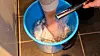 - Fukt tøystykket. Surr det sammen så tett du klarer, og legg i baljen.