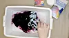 - Skyll tøystykket i rent vann helt til all overskuddsfarge er borte. NB! Pass på at eventuelle ufargede deler av tøystykket ikke kommer borti overskuddsfargen.
