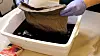 - La den nederste delen av tøystykket få ligge i fargebadet i 15 minutter til.
