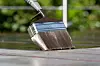 Påfør beisen med pensel eller rull montert på forlengerskaft. Skaftet gjør at rekkevidden øker, og at du slipper å krabbe på kne mens du arbeider. Det gjør at jobben går raskere og er mindre slitsomt for kroppen.