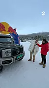 FEIRER: Adrian Sellevoll har hatt førerkort på bil i over ett år. Her feirer han med en drømmedag på isbanen, blant annet med Mercedes-AMG G63 4x4 ^2.