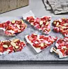 Fryste jordbærflak er en herlig og forfriskende snack som kombinerer søte jordbær med kremet yoghurt og smeltet hvit sjokolade.