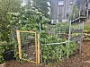 De gjorde som de vanligvis gjør når sommeren er over, og fjernet både nett og duk, men prosessen videre ble annerledes enn vanlig. De laget nemlig en liten port av tre som inngang til den nye grønnsakshagen, og til trampolinens konstruksjon festet de armeringsnett i to høyder. Til sammen holder trampolinerammen og nettingen inntrengerne ute.