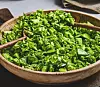 Dressingen er hjertet av salaten, og den grønne fargen kommer fra urtene, som gir dressingen en frisk og aromatisk smak.