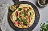 Pizza med mortadella og pistasj er en moderne klassiker fra Italia som kombinerer det enkle med det elegante. Den sprø bunnen toppes med en mild crème fraîche-saus, smeltet ost og tynne skiver mortadella. Til slutt gir hakkede pistasjnøtter og frisk ruccula både crunch og friskhet – en perfekt balanse av smaker som løfter pizzakvelden til noe ekstra spesielt.