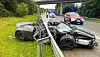 Da den lave superbilen traff autovernet, ble den ikke slynget ut i veien igjen. Nei, bilen havnet i stedet inni og under autovernet og fikk omfattende skader.