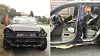 Stanset Porsche uten dører, lykter og støtfangere på motorveien