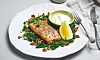 Server laksen med grønnkål og press sitronsaft over fisken rett før servering. Ønsker du mer sitronsmak, kan du finrive litt av skallet over toppen.