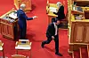 Men før statsministeren fikk kost seg med snopeposen, kom stortingspresidenten ned fra sin opphøyede talerstol og tok godteriet.