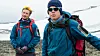 Allereie i el-bilen opp til Juvasshytta er dei lokale guidane Bjørn Ola Sveen Volden (26) og Åsmund Gaukstad (24) i gang med formidlinga.