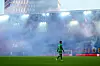Like etter kampstart mot Sarpsborg søndag ble det avfyrt fyrverkeri og bluss. Mye havnet på banen, og hoveddommer Mathias Støfringshaug ble blant annet truffet, men kom uskadet fra det.