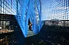 Den 40 meter lange midlertidige broen henger i en diagonal mellom det østlige og vestlige beinet på det over 300 meter høye tårnet.