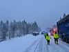 Sju ambulanser og et ambulansehelikopter ble ifølge SOS Alarm deretter sendt ut, men helikopteret kunne ikke lande som følge av det tette snøværet.