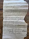 Papiret i flasken var vått, men leselig. De to soldatene skriver at de er på vei fra Adelaide tidligere på året for å reise mot Europa om bord på skipet Ballarat.