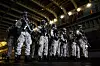 Finske marinesoldater forbereder seg på å gå om bord på en svensk CB90-klasse hurtigangrepsfartøy i forkant av en amfibisk angrepsdemonstrasjon under militærøvelsen Nordic Response 24 10. mars 2024, til sjøs nær Sørstraumen, over polarsirkelen i Norge. Nordic Response 24 var en del av den større NATO-øvelsen Steadfast Defende og involverte luft-, sjø- og landstyrker, med over 100 jagerfly, 50 skip og over 20.000 tropper som øvde på defensive manøvrer i kalde og tøffe værforhold. (Foto: Jonathan NACKSTRAND / AFP)