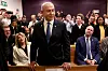 Idet han ankom rettslokalet på morgenen, var både tilhengere og motstandere samlet utenfor. Noen ropte at folket støtter ham, mens andre krevde fengselsstraff for Netanyahu.