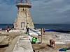 På vei til strandpromenaden, passerer vi det som en gang var et hotell, men som nå bare er et skall av en bygning – en grim påminnelse om grusomhetene denne byen har stått i.