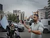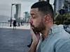 – Hei, Sigrid, beklager at jeg ikke fikk svart på mailen din. Ja, jeg kan være med. Hører du meg? Ja. Jeg er i Beirut. .... Ja, ja, sier han inn i mobilen.