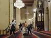 Fredagsbønnen er over og det er nesten tomt i bønnesalen når vi kikker opp mot den mektige, mer enn 50 meter høye, mosaikk-kuppelen.