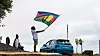 En kvinne vifter med flagget til den nasjonale frigjøringsfronten FLNKS. Uavhengighetsbevegelsens flagg er likestilt med den franske trikoloren i territoriet, som ligger sørvest i Stillehavet. Foto: Nicolas Job / AP / NTB