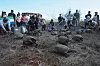Nasjonalparkvoktere bar kassene med skilpaddene flere kilometer over ulendt, vulkansk terreng før dyrene ble sluppet fri i vanskelig tilgjengelig områder, sier Ecuadors miljødepartement i en uttalelse.