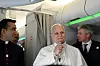 Paven snakket med journalister om bord på flyet fra Kamerun til Algerie onsdag da han svarte på presidentens kritikk.