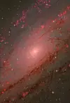 Bildet viser svært mange detaljer rundt den tette galaksekjernen hvor det også er mange stjerner.