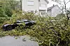 Et tre falt over en personbil i et boligstrøk i Bergen under ekstremværet Amys herjinger.