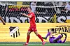 Magnússon kunne, og kanskje burde, fått sitt hattrick etter 73 minutter, men hans heading fra kloss hold gikk over mål.
