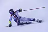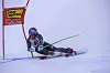 Også under kvinnenes storslalåmrenn lørdag blåste det voldsomt på toppen. Thea Louise Stjernesund var blant dem som fikk trøbbel i første omgang.