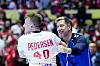 Lagene gikk til pause på 16-16. I starten av 2. omgang hadde Haug en redningsprosent på 50.