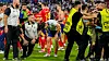 Morata feiret semifinaleseieren med lagkameratene i München da en sikkerhetsvakt skled og kolliderte med ham da han forsøkte å stoppe en inntrenger på banen.